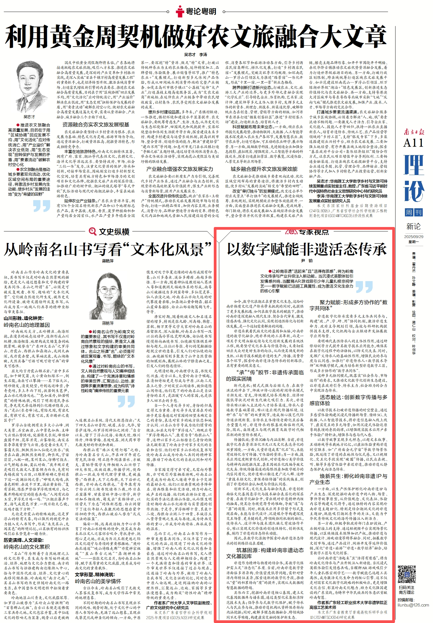 如今,数字化浪潮正在重塑文化生态,这给岭南非物质文化遗产传承带来挑战的同时,也提供了更多发展机遇。如何在数字技术的赋能下,推动岭南非遗深度融入现代生活、契合当代审美、激发情感共鸣、强化文化认同,实现创造性转化与创新性发展,是一个迫切需要解决的问题。